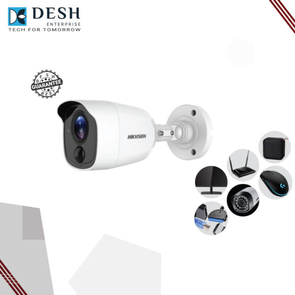 Hikvision DS-2CE11D0T-PIRL 2MP PIR Fixed Mini Bullet Camera featured with 2 MP PIR bullet camera, PIR detection and strobe light alarm to warn off intruders in real time, EXIR 2.0: advanced infrared technology with 20 m IR distance & Water and dust resistant (IP67). This Mini Bullet Camera comes with 2.0 megapixel progressive scan CMOS Image Sensor, 1920 (H) × 1080 (V) Max. Resolution, Color: 0.01 Lux @ (F1.2, AGC ON), 0 Lux with IR, PAL: 1/25 s to 1/50, 000 s,NTSC: 1/30 s to 1/50, 000 s Shutter Time. It has IR cut filter Day & Night. Pan: 0° to 360°, Tilt: 0° to 180°, Rotate: 0° to 360° Angle Adjustment with PAL/NTSC Signal System are also available in this Mini Bullet Camera. The latest Hikvision DS-2CE11D0T-PIRL 2MP PIR Fixed Mini Bullet Camera has 01 year warranty.